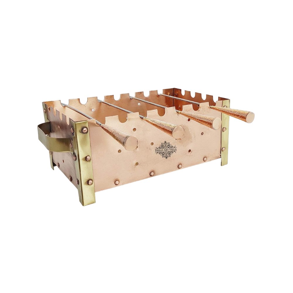 Brass Copper Barbeque Grill Set, Home & Outdoor Charcoal Grill Oven with 3 Skewers