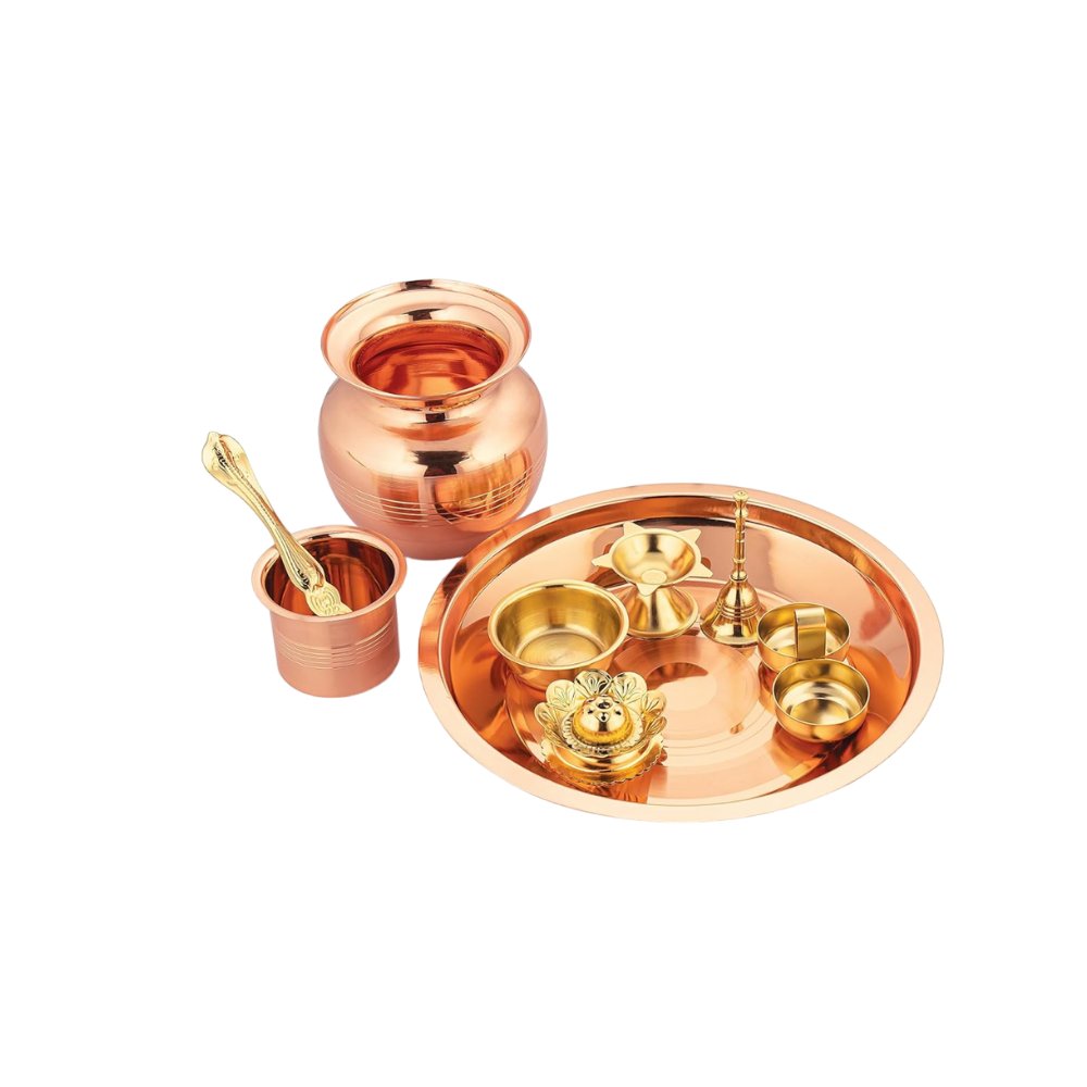 4. Copper and Brass Plated Puja Thali Set
