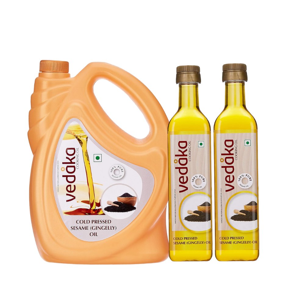 Vedaka: Sesame Oil Bottle & Can